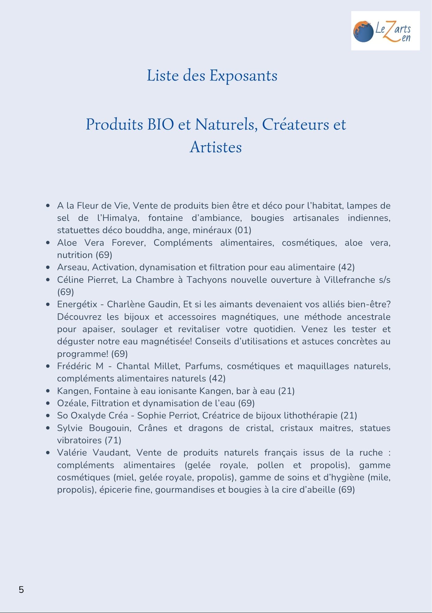 Vous pourrez découvrir des thèmes variés : l’atrapuncture, la géobiologie, l’eau et sa filtration, la spiruline, la sève de bouleau, …
