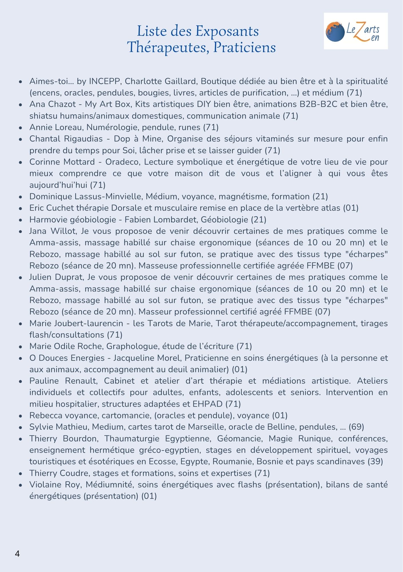 – un temps pour découvrir les diverses pratiques et thérapies douces