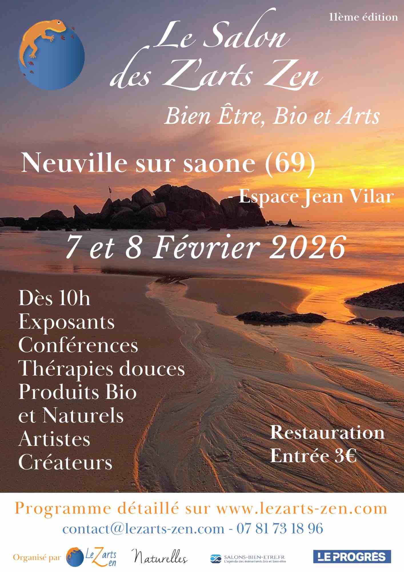 Cette 10ème édition du salon du bien être et des arts de 2 jours vous permettra de découvrir 60 exposants (thérapeutes/praticiens, prof du bien être et artistes) qui animeront près de 20 conférences sur différents thèmes touchant les thérapies douces : l’hypnose, l’Aloe Vera, la conscience communicative, la communication animale, …